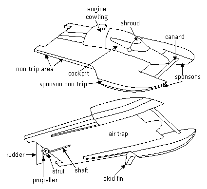 flying duck — hence the name. In a hydroplane, the canard is